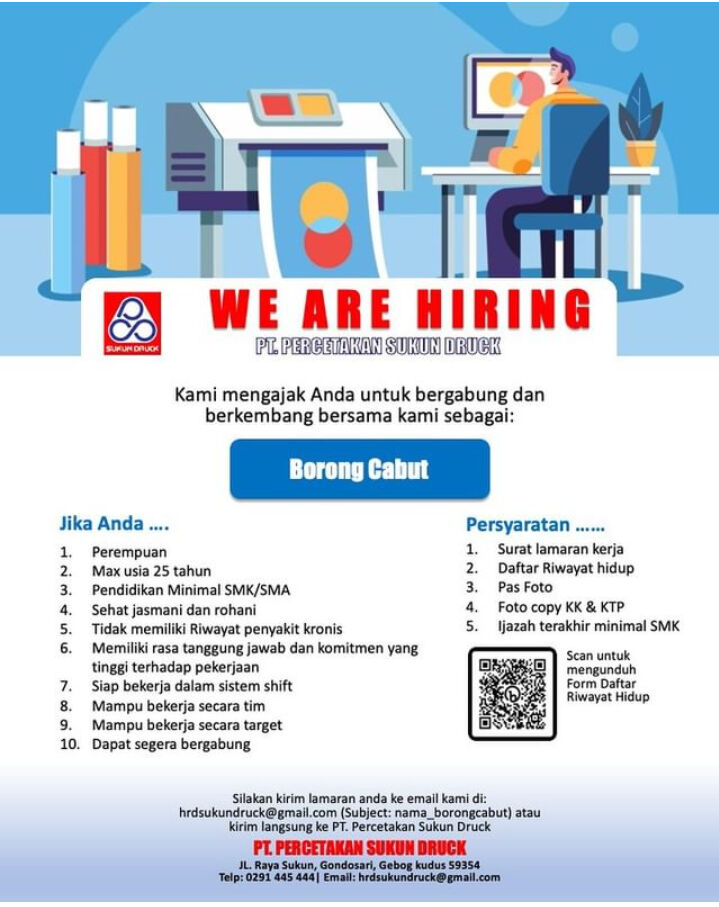 LOWONGAN JANUARI 2024. SILAKAN BAGI REKANAKER YANG BERMINAT BISA MENGIRIM KE ALAMAT YANG TERTERA ATAU MENGHUBUNGI NOMOR YANG TERCANTUM